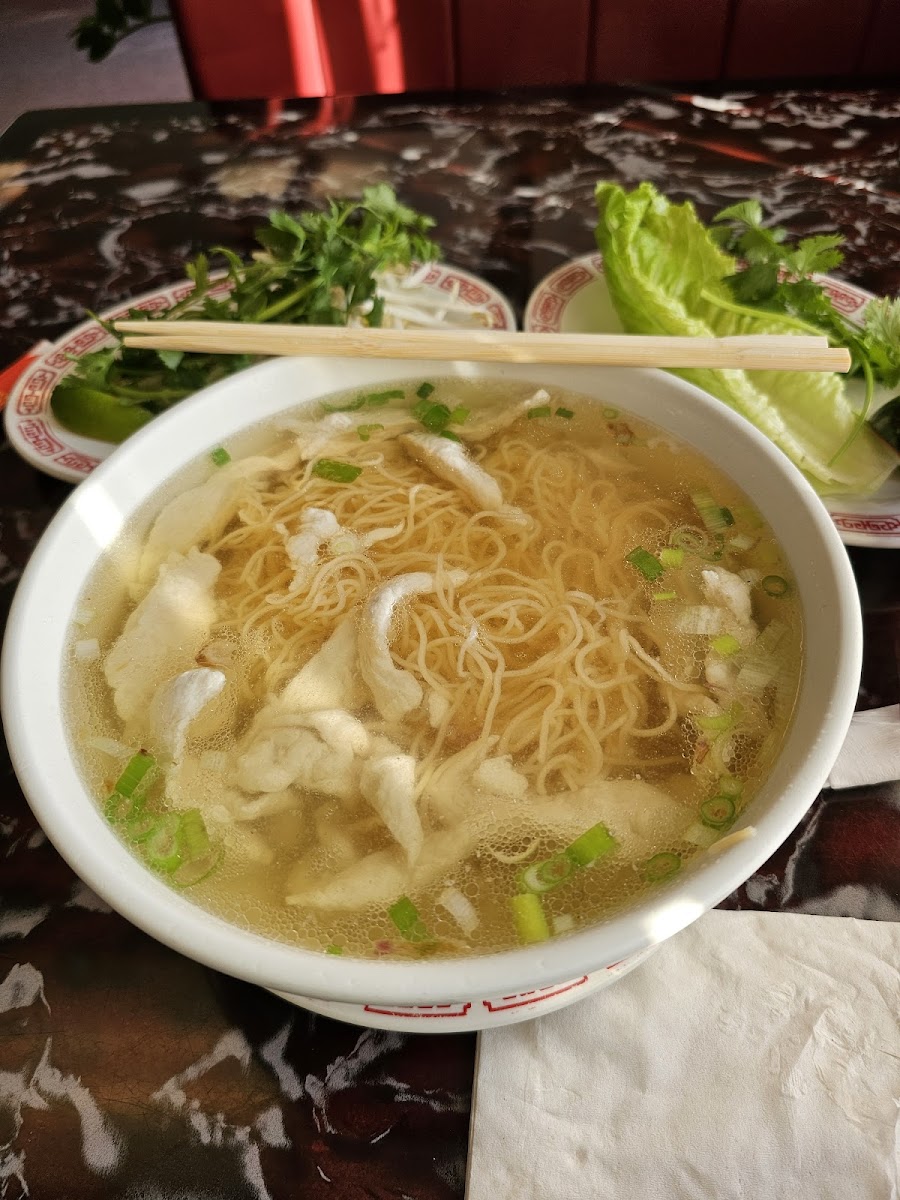 Had the H24 (chicken soup and egg noodles) along with a few spring rolls. The food came out how and fresh! The broth was clear, aromatic and flavorful. My spring rolls were a bit on the smaller side but the lettuce was crisp and fresh and the sauce was delicious! The portion size was great for the price point. The service staff was very attentive and welcoming.